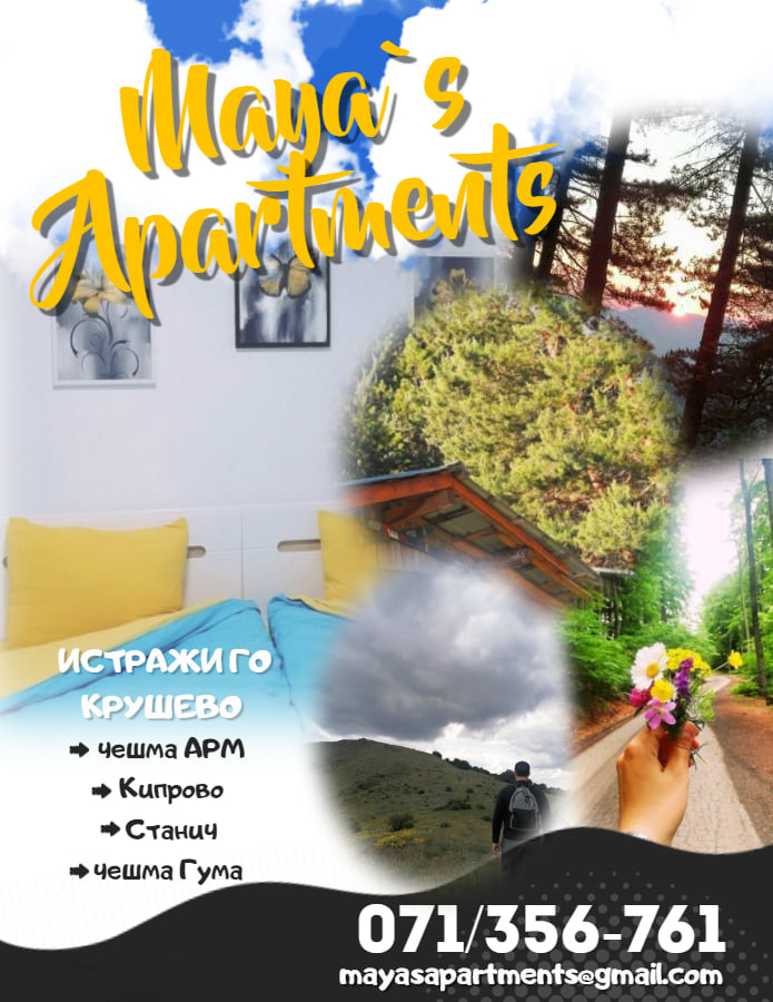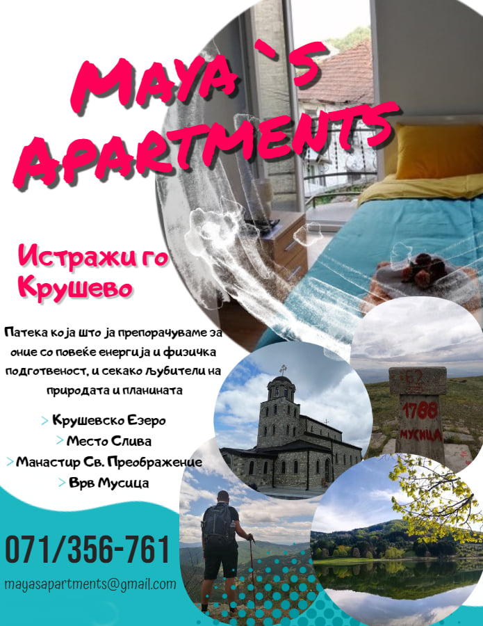 Напомена: Доколку сте заинтересирани Апартмани „Маја“ /Maya’s Apartments можат да Ви понудат и организирање на планинарски тури во околината на Крушево.